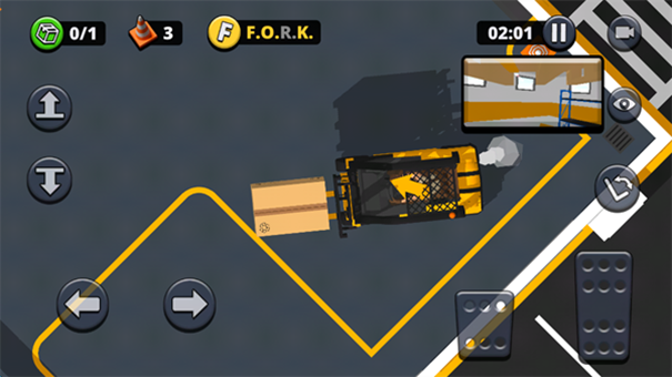 6、放置完成后,我们仍然需要将叉车停放到特定区域,当停放后,就会关卡结算。