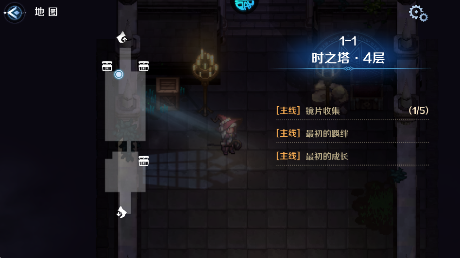 2、点击打开右上角的地图,可以看到具体的任务和宝箱的位置