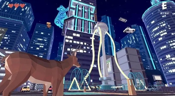 4、高自由度城市冒险玩法,化身小鹿穿梭楼宇街巷,用鹿角撞车、用蹄子踹门、用舌头舔警察;