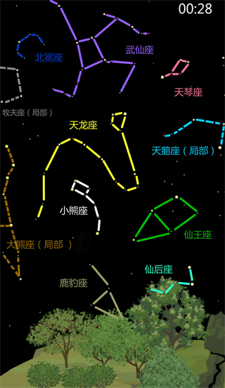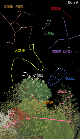 可收集(7个):狐狸座,天琴座,天龙座,小熊座,仙王座,仙后座,鹿豹座。