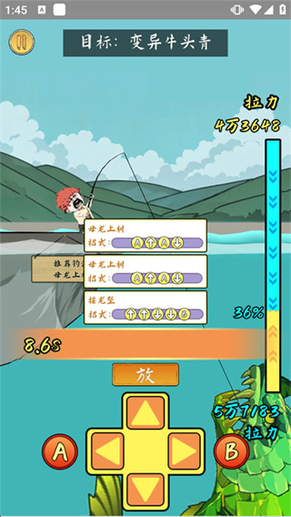 3、当遇到高等级或稀有鱼类时,会自动进入技能释放阶段,玩家需要根据提示选择对应招式。