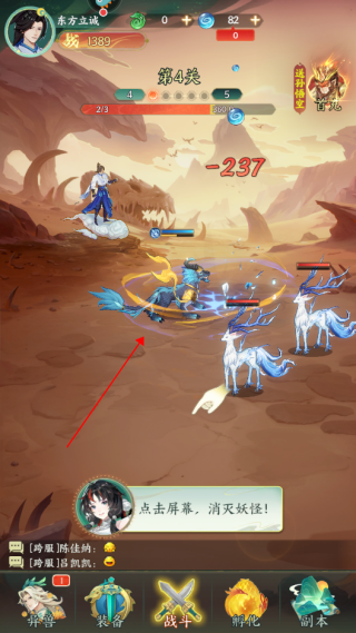 2、击败敌人后获得灵气,点击已拥有的异兽图标,即可为其分配资源。