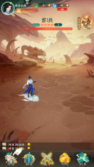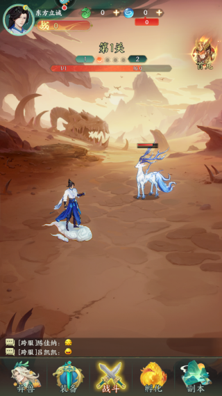 3、在角色界面中对主角或已获取的灵兽进行升级,提升整体战力。