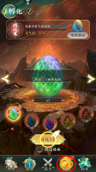 5、获得异兽蛋后可点击“孵化”,重复获取同类异兽蛋还可转化为升级材料。