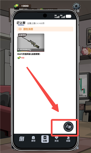 7、新周开始后,前往【出售】界面,选择【上架】操作。