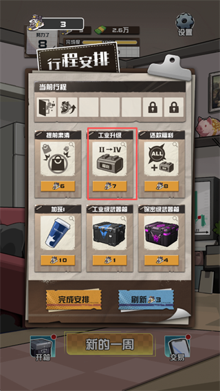 9、游戏核心必选天赋为【工业升级】,该天赋可将开箱获得的积分奖励统一转化为红箱,后期资金充裕时可直接在交易行购买箱子,形成稳定的红箱循环。