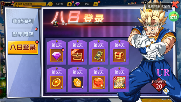 连续登录8天即可领取超值奖励,包含大量钻石、稀有宝箱以及UR·超级赛亚人贝吉特等强力角色,新手开局直接起飞。