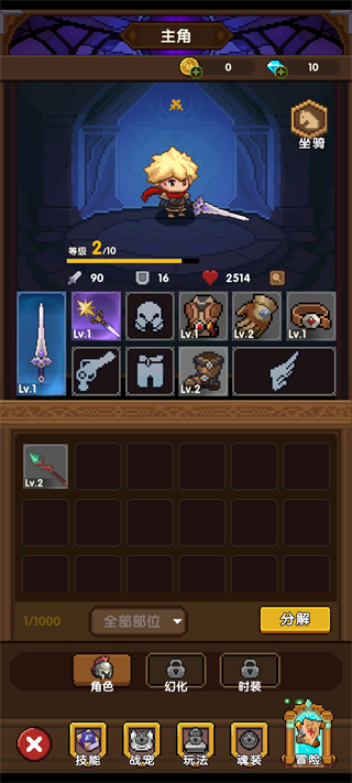 前期优先穿戴掉落的装备,尤其是武器和防具,直接提升攻击、防御与生命值。背包内的低等级或无用装备可通过“分解”功能回收资源,为后续强化做准备。