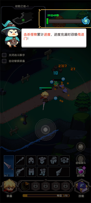 开启“自动战斗”可解放双手,高效清怪刷宝;血量告急时,及时使用“治疗瓶”恢复生命,避免不必要的死亡。同时,留意场景内的进度条,击杀怪物填充进度,触发传送门推进关卡。