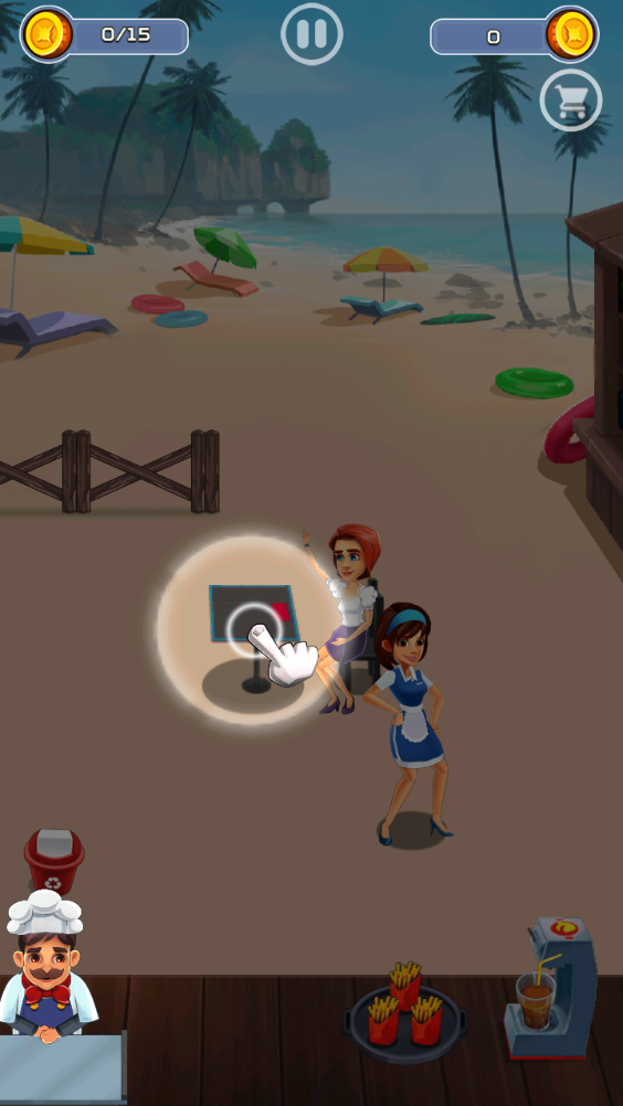 1、玩家在本站下载并安装游戏后,启动应用,点击店内餐桌即可触发顾客入座并开始点餐。