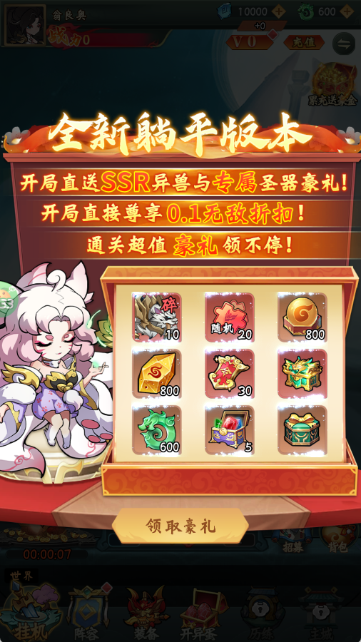 2、开局即送SSR异兽与专属圣器、修为仙玉,资源直接拉满