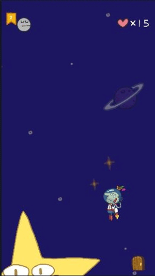 角色自动向下坠落,需通过连续点击屏幕产生反向推力,维持悬浮平衡状态,并在移动中避开所有星星。