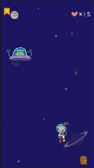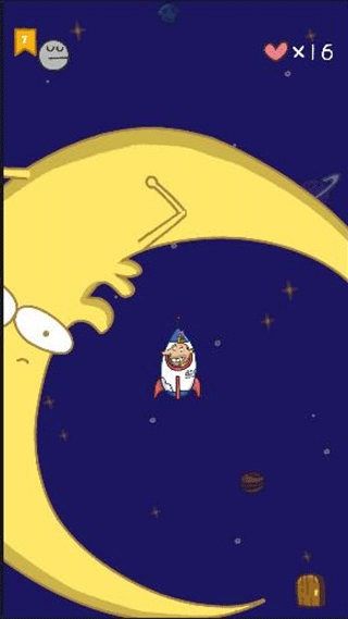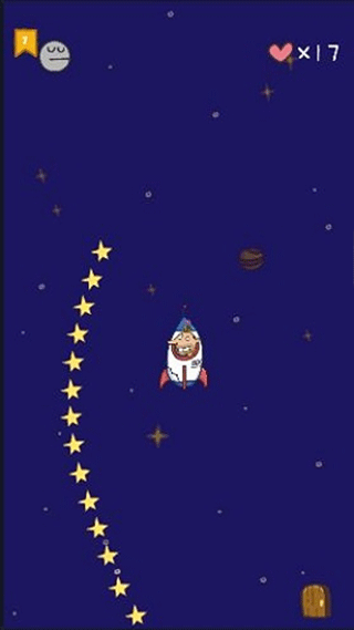 本关需操控火箭升空。持续按住屏幕,保持火箭稳定上升,直至抵达太空区域,成功寻回狗狗。