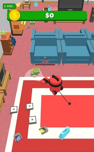 游戏采用明快清新的卡通美术风格,整体配色鲜艳饱满,界面简洁直观,初见即生游玩冲动。开局后,你将操控专属吸尘器,在限定区域内自主移动,持续吸入散落的道具、障碍物乃至其他小型物件。随着吸入量增加,吸尘器体型逐步膨胀,吸力持续提升,成长节奏愈发迅猛——唯有争分夺秒,全力吞噬,才能抢占先机。