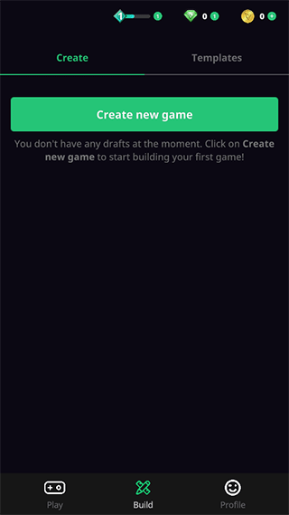 6、返回主界面后,切换至Build界面,即可新建专属游戏项目,开启你的创作之旅。