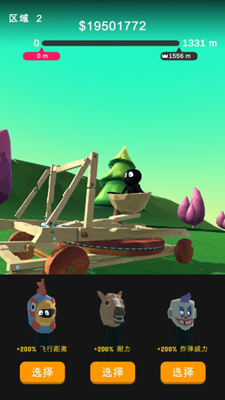 养成方面:游戏提供三大核心属性——耐力(影响滞空时长)、弹射力(决定初始爆发距离)、收入(每局结算金币获取量)。使用金币可逐级提升各项属性,每次升级固定提升10%,但后续升级所需金币呈阶梯式增长。