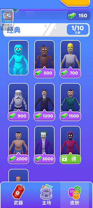 2、在武器页面,海量搞怪武器整齐陈列,涵盖近战、远程、陷阱、环境互动等多种类型;部分强力武器需通关指定关卡方可解锁,增添成长目标感。