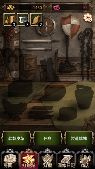 3、轻策略经营系统:点击选择“鞣质皮革”“休息”“制作铁块”等基础指令,逐步扩充店铺产能;