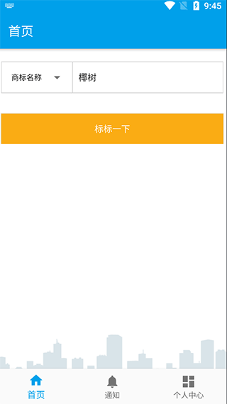 1、打开商标查询app,在首页输入商标名称、申请人或注册号中的任意一项信息,点击搜索即可启动查询;