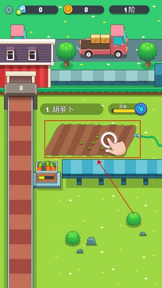 1、连续点击图中所示区域,即可依次完成播种、浇水、晒光及收割等基础农事操作。