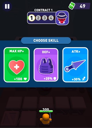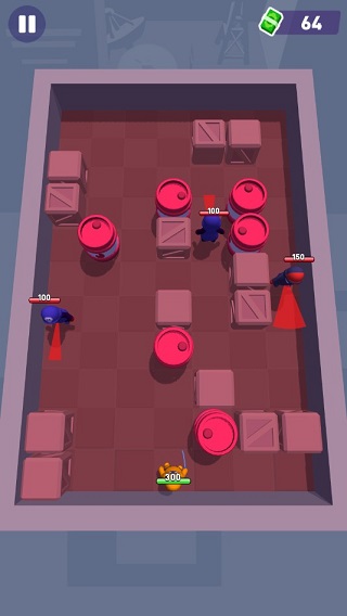 游戏采用俯视角操作模式,玩家通过点击并滑动屏幕设定刺客移动方向与距离。合理借助墙体、箱体等掩体隐蔽身形,是完成潜行击杀的关键前提。成功击杀后可获得钞票,用于解锁更多初始刺客角色,丰富战术选择。