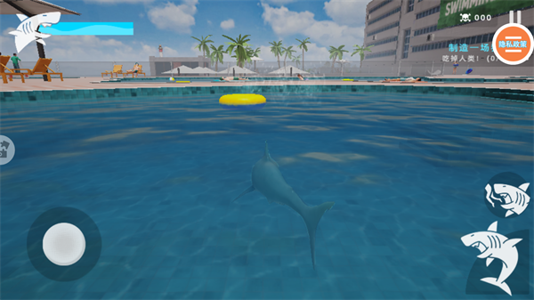 深海鲨鱼模拟器手机版是一款超解压的饥饿狂鲨吞噬猎杀游戏。采用全新3D引擎打造,呈现逼真的海滩与泳池环境,沉浸感十足;玩家以鲨鱼视角展开猎杀与捕猎。游戏还提供丰富个性化装扮,自由定制专属鲨鱼形象。
