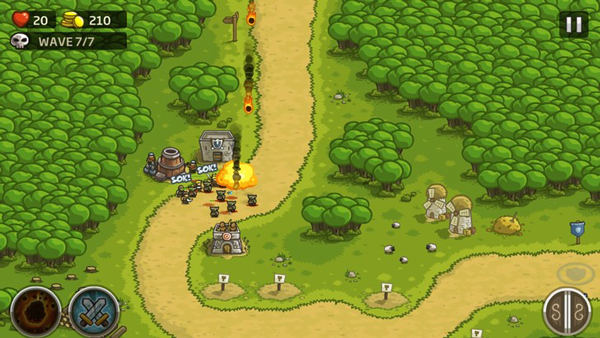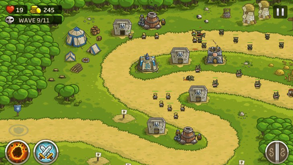 皇家守卫军手机版是一款多元化塔防游戏,又称王国保卫战(Kingdom Rush)。游戏中包含兵营、箭塔、法师和炮塔四大防御塔,每种均支持五级升级,并可在顶级解锁专属技能以强化威力。游戏拥有完整的故事主线与丰富多样的挑战关卡。