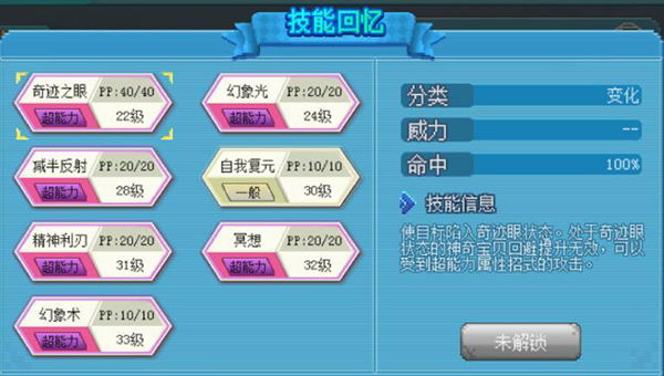 沙奈朵:覆盖主流超能系技能,可通过技能机补全缺失招式;具备强化类(冥想、影分身)、控制类(催眠、食梦)及续航手段;魔法叶可暂用以克制恶系,后期推荐习得妖精系核心技能“月亮之力”,专精屠龙。