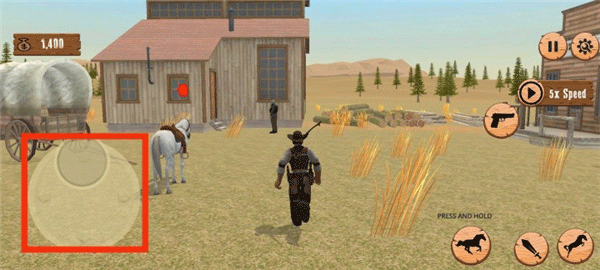 3、滑动屏幕左侧虚拟方向盘区域,控制牛仔左右移动,实现精准走位;