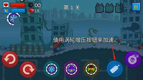 4、车子会自己行驶,如果想要加速的话可以使用涡轮增压按钮;