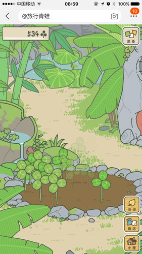 2、我们可以在庭院中看到地里种着很多三叶草,按住屏幕滑动这些三叶草即可收集起来。运气好还有几率收到四叶草,只是概率比较小。三叶草在商城兑换食物,而四叶草可以当做一次性的护身符。