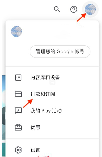 1、登录账户后,点击右上角头像,选择“付款和订阅”。