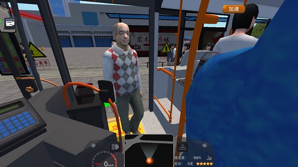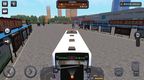 路线设置完成后,点击“出发”即可开始模拟驾驶。此时将进入公交车操作界面。