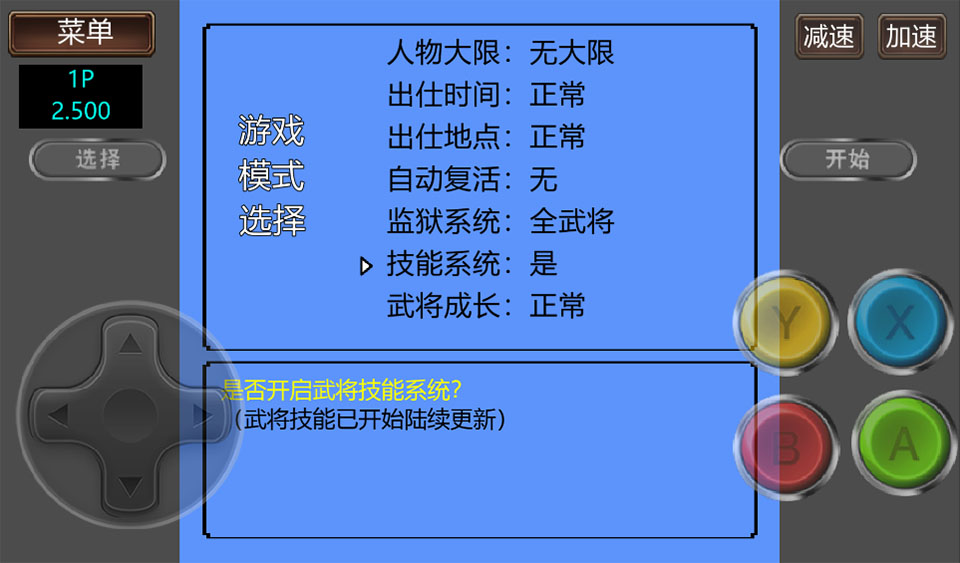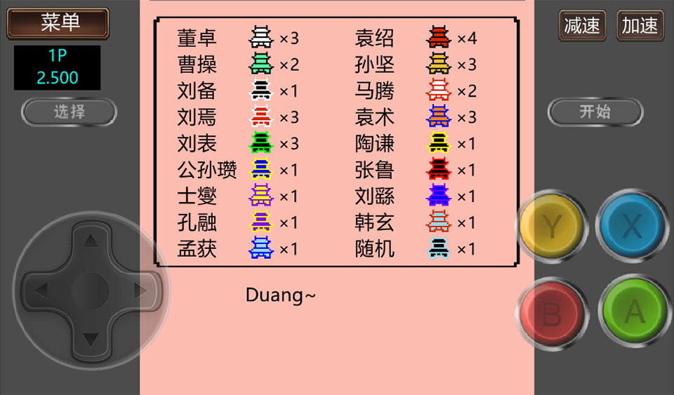 4、创建完武将后,进入选择君主界面。此处隐藏一个彩蛋:点击“开始”按钮的同时快速摇动设备(模拟“方向盘”操作),当屏幕出现“Duang”提示时,即表示触发成功——进入游戏后,初始城池资源与兵力将全部满配。
