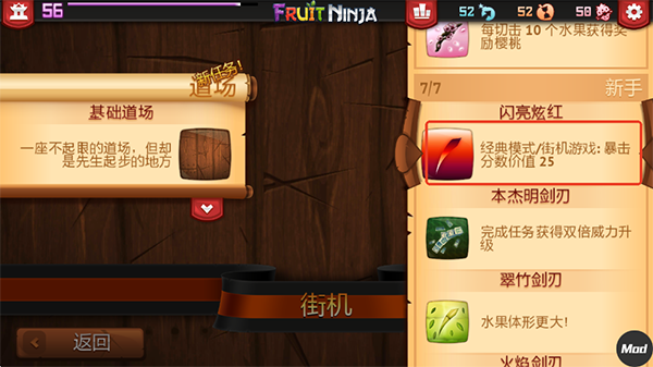 1、切水果,不要切炸弹——这是《水果忍者》最基础也最令人着迷的规则!在经典模式中挑战你的持久力,在街机模式中冲击高分,或是在禅境模式下专注练习连击技巧。丰富的剑刃与道场任你解锁,助你逐步成长为真正的水果忍者大师。