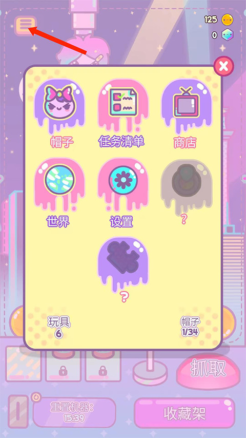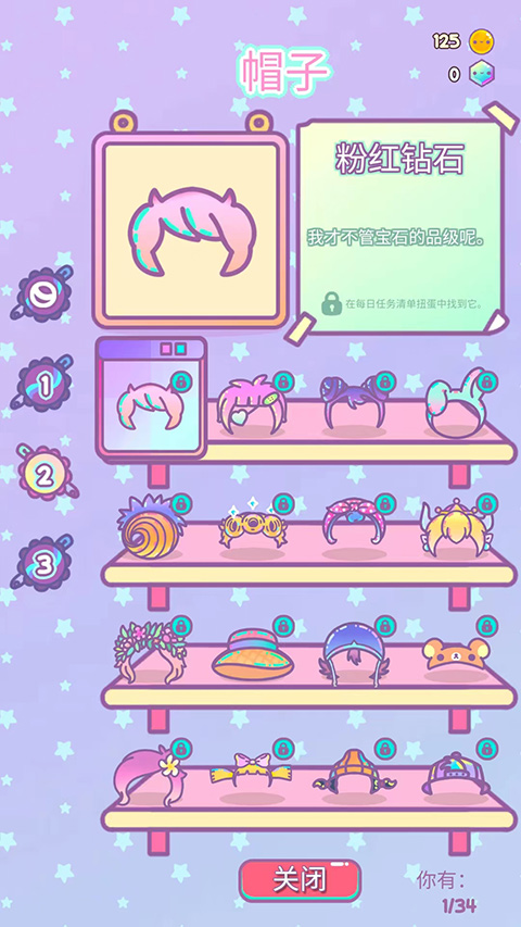 7、可看到不同样式的帽子装扮,可以通过抓取礼物球或者完成清单任务解锁获取,以上就是爪女孩的玩法了。