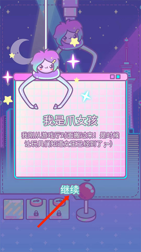 1、打卡爪女孩游戏,进入游戏界面,选择【继续】选项,