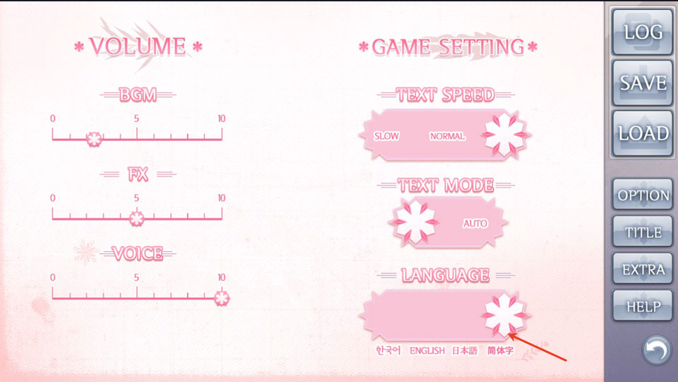 2、在设置界面中找到语言选项(Language),点击后选择“简体字”即可将游戏语言切换为中文;