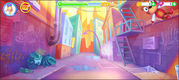 2、通过滑动手机屏幕控制攻击方向和力度,对小熊发起各种“袭击”。