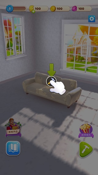 获得所需物品后,返回房间界面,点击图中指定位置即可开始装修。