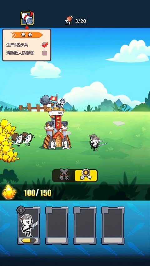 3、角色设计充满个性,无论是哭脸表情士兵还是炮兵单位,都洋溢着可爱又滑稽的气息。