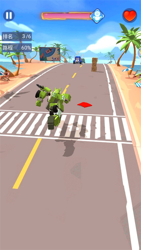 1、下载进入汽车人变形热血赛车游戏,通过滑动屏幕来控制汽车人移动;