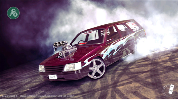 3、操作布局清晰:左侧为虚拟方向盘,右侧设有刹车与漂移按钮,只需跟随指引即可完成炫酷漂移动作。