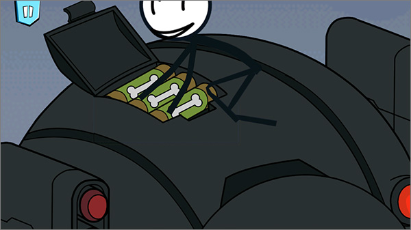 4、若未能完成五角星绘制,火柴人将被关入监狱。随后可在越狱过程中进入机器人设备室,此时可选择“打包机器人”或“选择怼人鸭”;