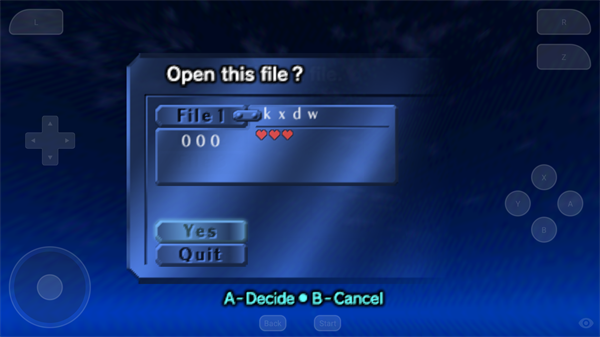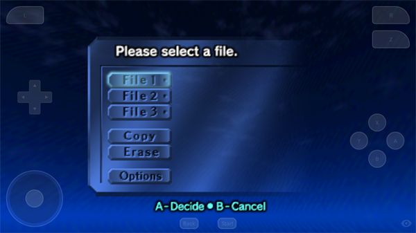 3、选择一个存档位置用于新建或读取游戏进度。注意:屏幕右侧A键为确认,B键为返回。