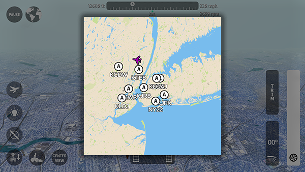 4、打开右上角地图功能,选择目标机场,依照导航指示朝指定方向飞行即可完成航线任务。