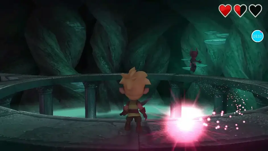 BOSS会发射三枚红球(需躲避)和一枚蓝球(需反弹)。被红球或蓝球击中均会掉血。正确做法是:躲避红球,待蓝球靠近时将其击回。成功击中BOSS三次蓝球即可通关,并解锁“英雄”成就。
