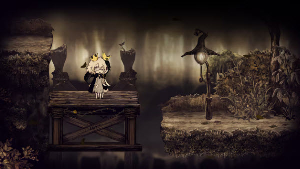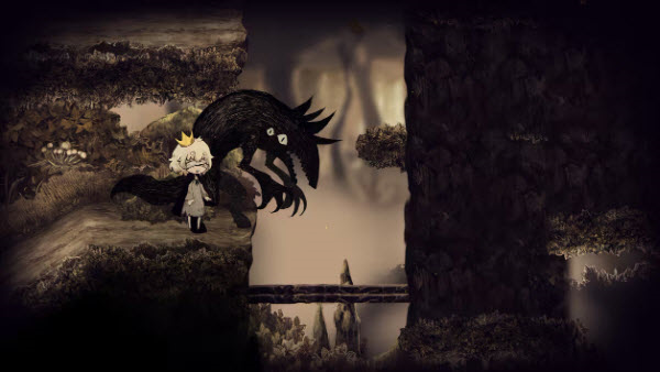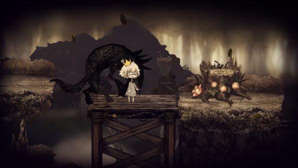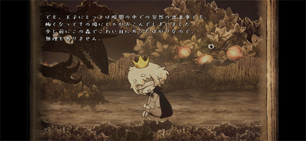 游戏舞台设定在危机四伏的幽暗森林,核心玩法围绕“狼”与“公主”两种形态的灵活切换展开。狼形态具备强健体魄与锋利爪牙,可攀高跳跃、击退怪物、破坏障碍,为前行扫清威胁;公主形态则温柔细腻,能牵起失明王子的手引导其安全通行,并与他协作解开各类机关谜题。玩家需在守护与欺骗之间巧妙周旋,引领看不见的王子穿越重重险境,共同谱写一段凄美动人的黑暗童话。(注:游戏主菜单与选项界面为日文,游戏内剧情面板为繁体中文。)