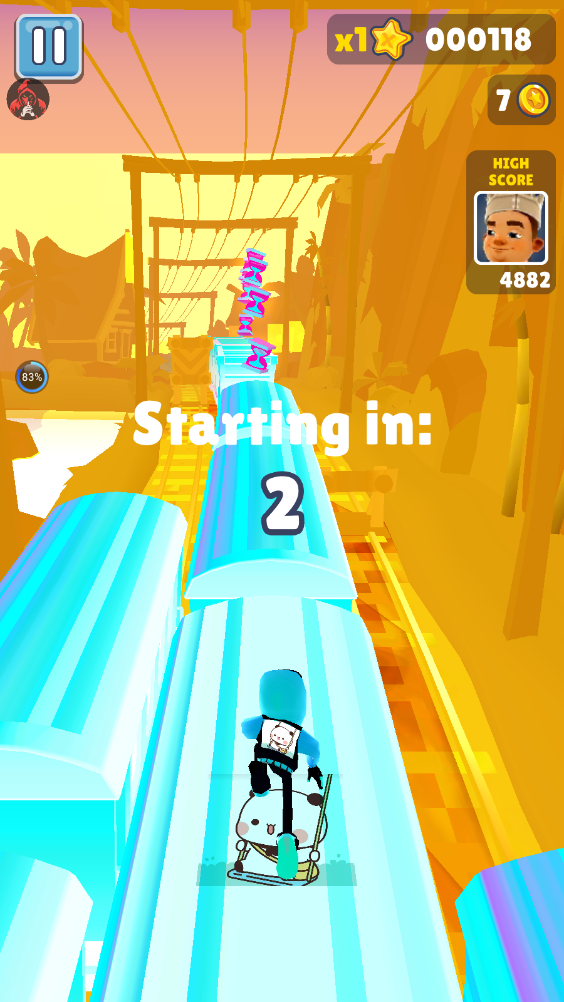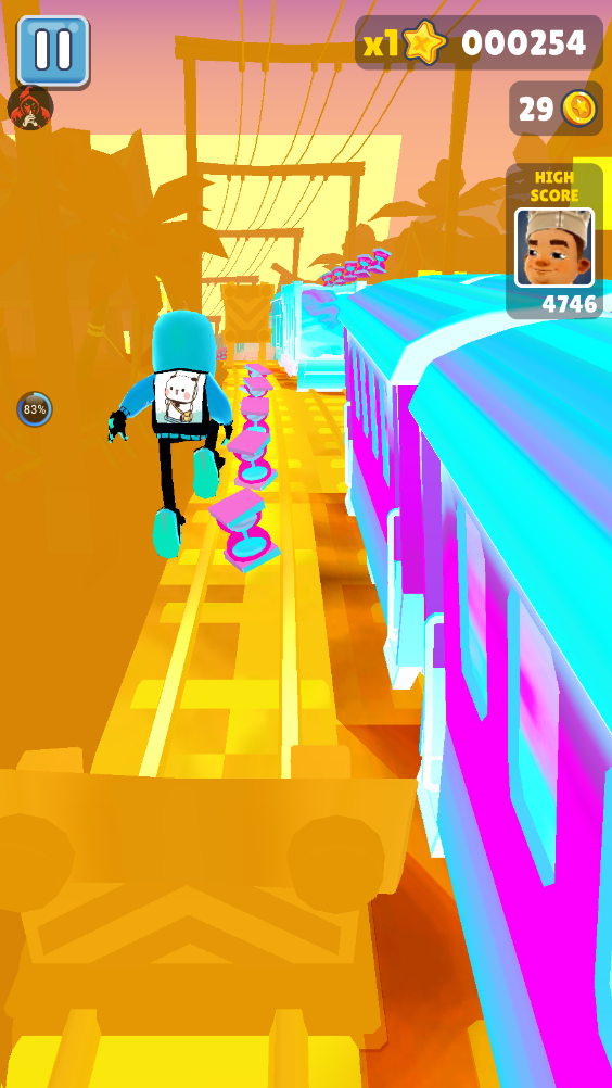 难度2星。接近金币时先左右滑动,稍作延迟再跳跃,避免因过早起跳而错过金币。即使落地失败,后续在火车上视野更开阔,仍便于躲避障碍。