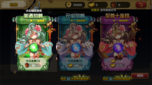 在招募界面可以花费游戏中的货币进行招募,其中武将角色有实力等级之分,选择强力的武将有助于快速提升整体战力。